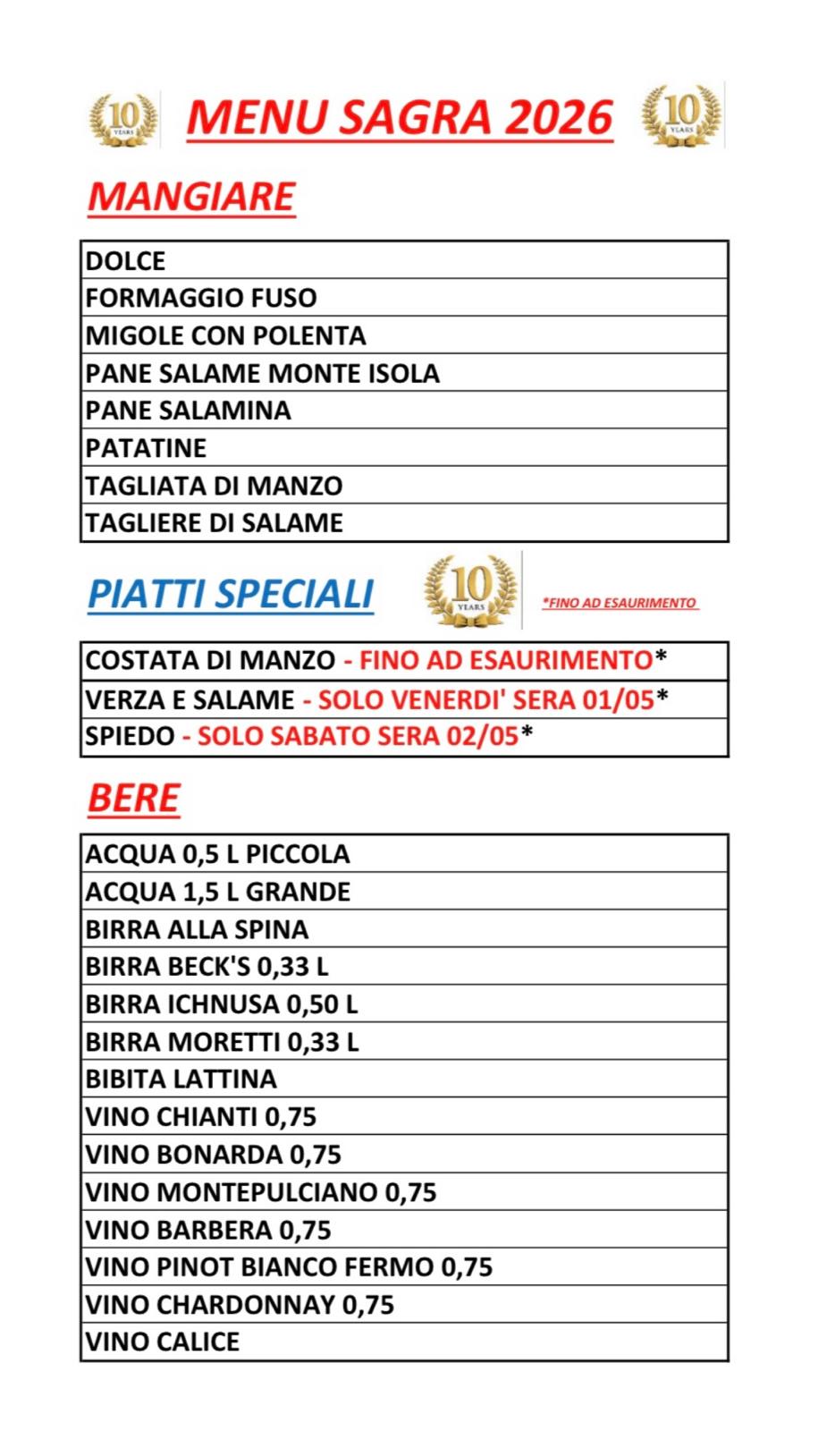 - stand gastronomico: clicca qui per scoprire il menu!
