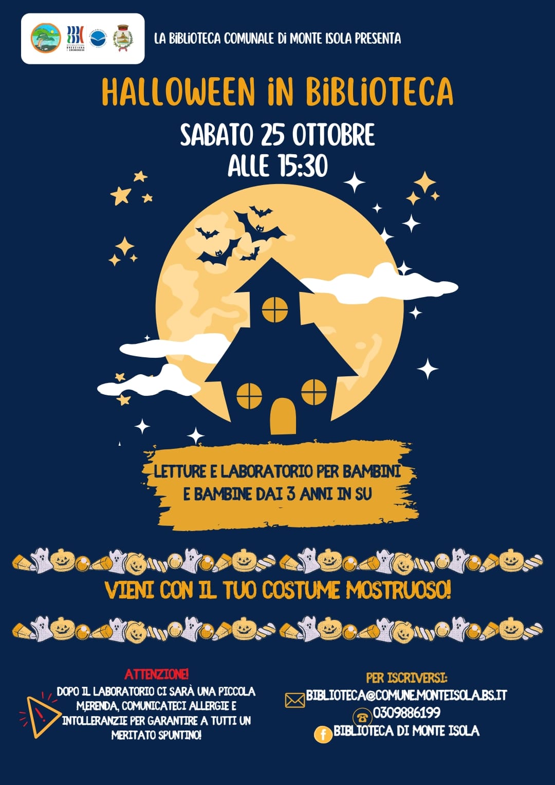 Sabato 25 ottobre alle ore 15:30 nella Biblioteca Comunale di Monte Isola, si terranno delle letture e un laboratorio per bambini dai 3 anni in su, per celebrare Halloween.